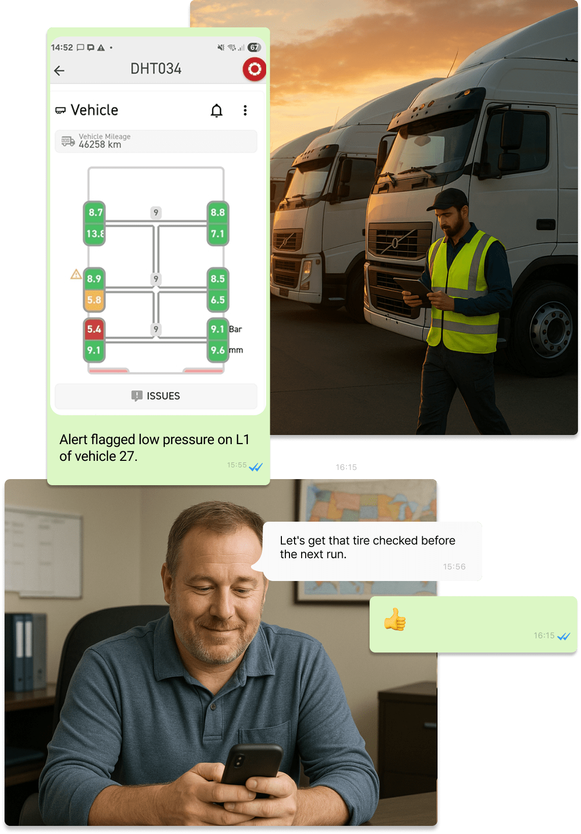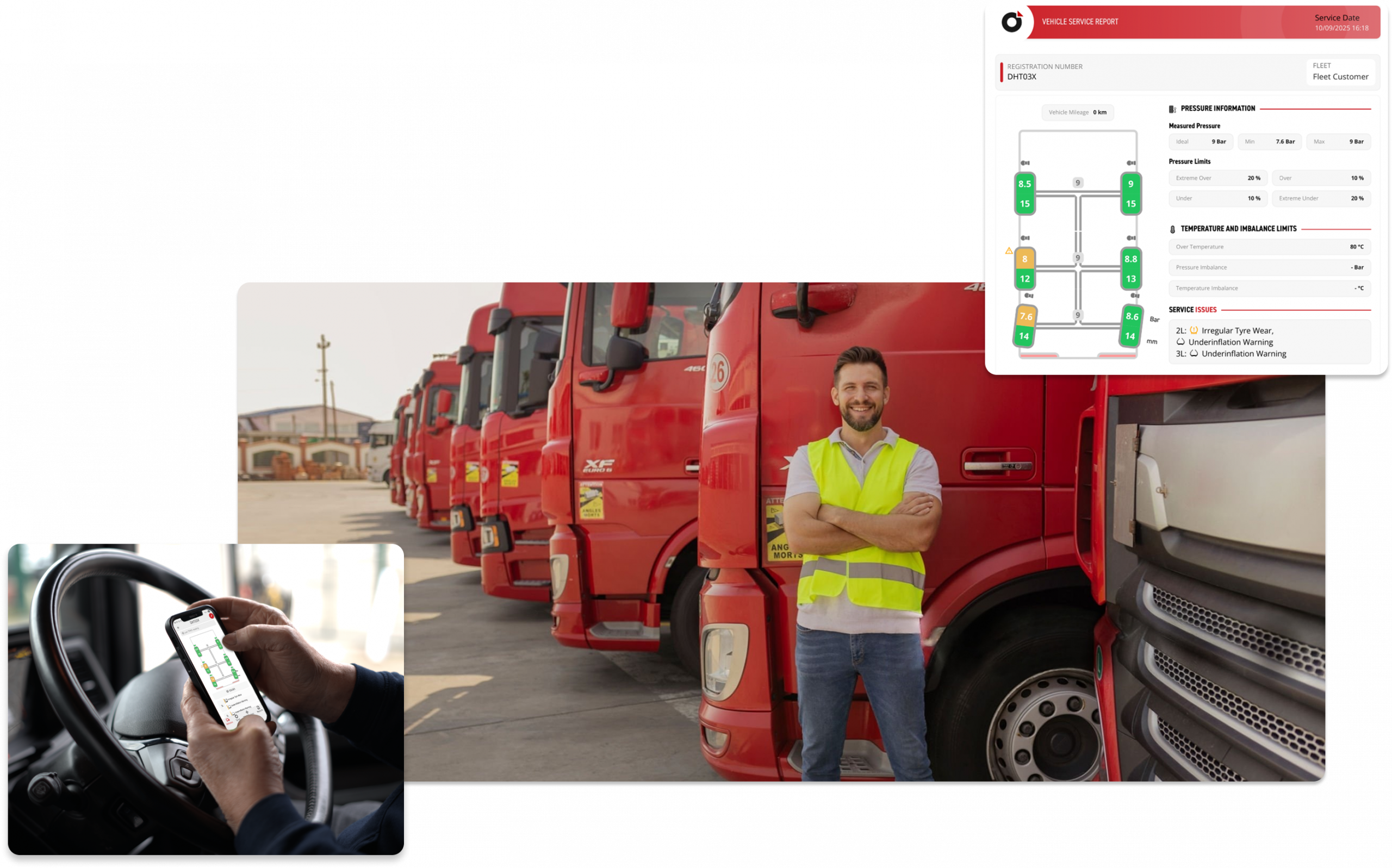 Real-time pressure & temperature monitoring to prevent costly breakdowns, ensure compliance, and extend tire life.